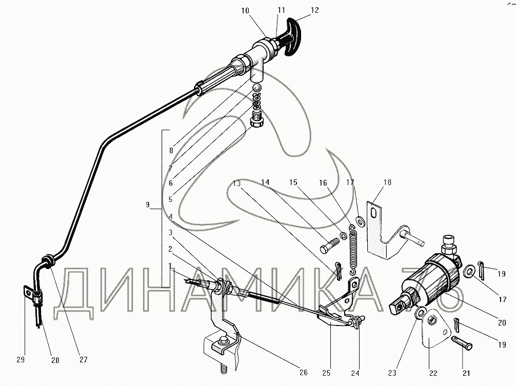 Тяга ручного останова двигателя — СПТС УРАЛ-32552: