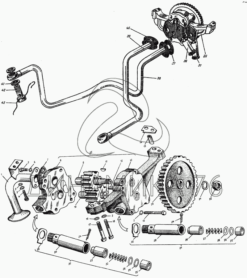 Перечень комплектующих от Насос масляный на А-01М, Д-461
