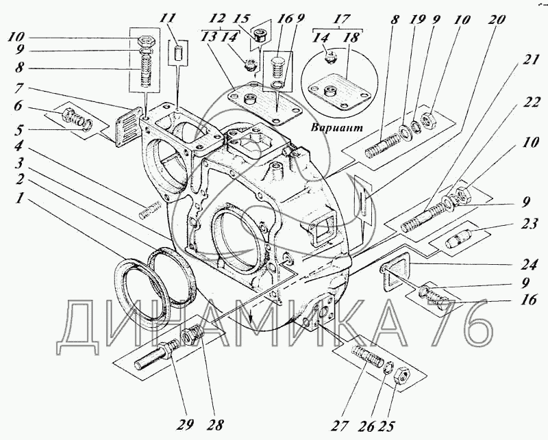 Перечень комплектующих от Картер маховика на Д-442