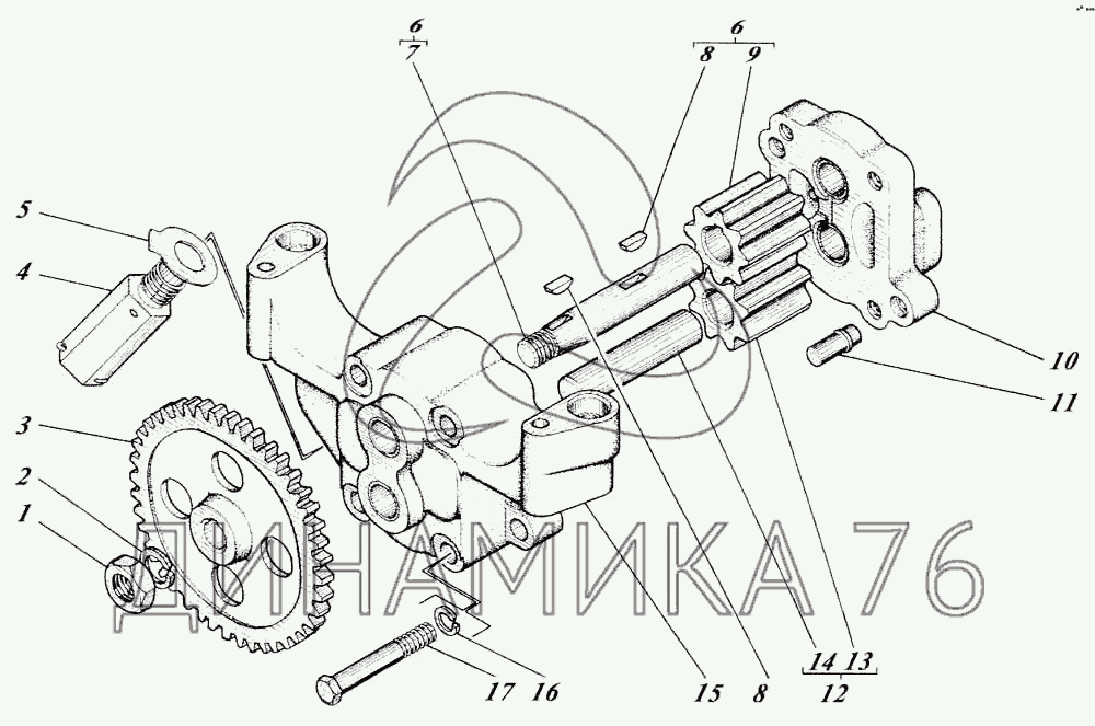 Перечень комплектующих от Насос масляный 442-47-09с2 на Д-442