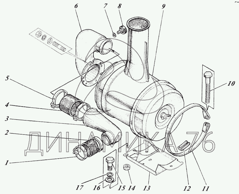 Перечень комплектующих от Установка воздухоочистителя 442-12с1 на Д-442