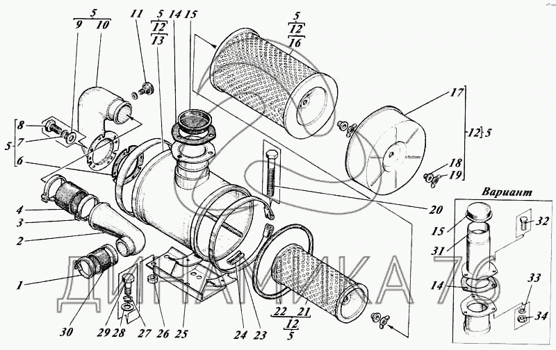 Перечень комплектующих от Установка воздухоочистителя 442-24-12c1 на Д-442