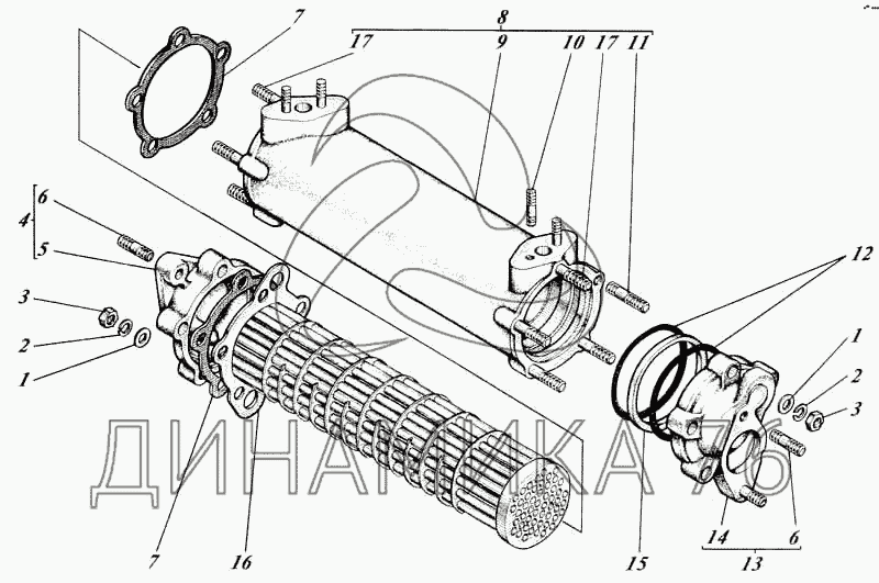 Перечень комплектующих от Жидкостно-масляный теплообменник 442-56-11c2 на Д-442