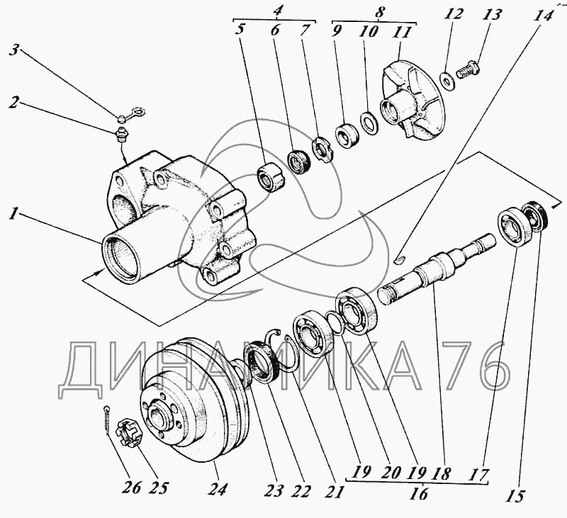 Перечень комплектующих от Насос водяной 41-13с3-1Г на Д-442И