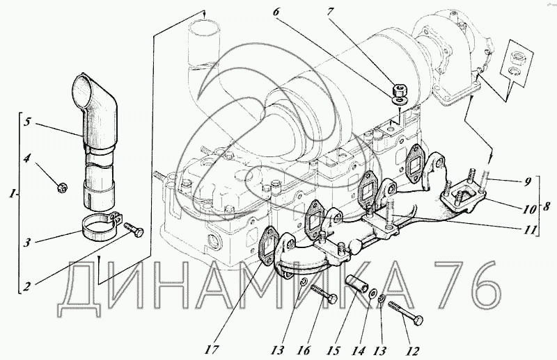 Перечень комплектующих от Установка коллектора выпускного 440-07c1 на Д-442И