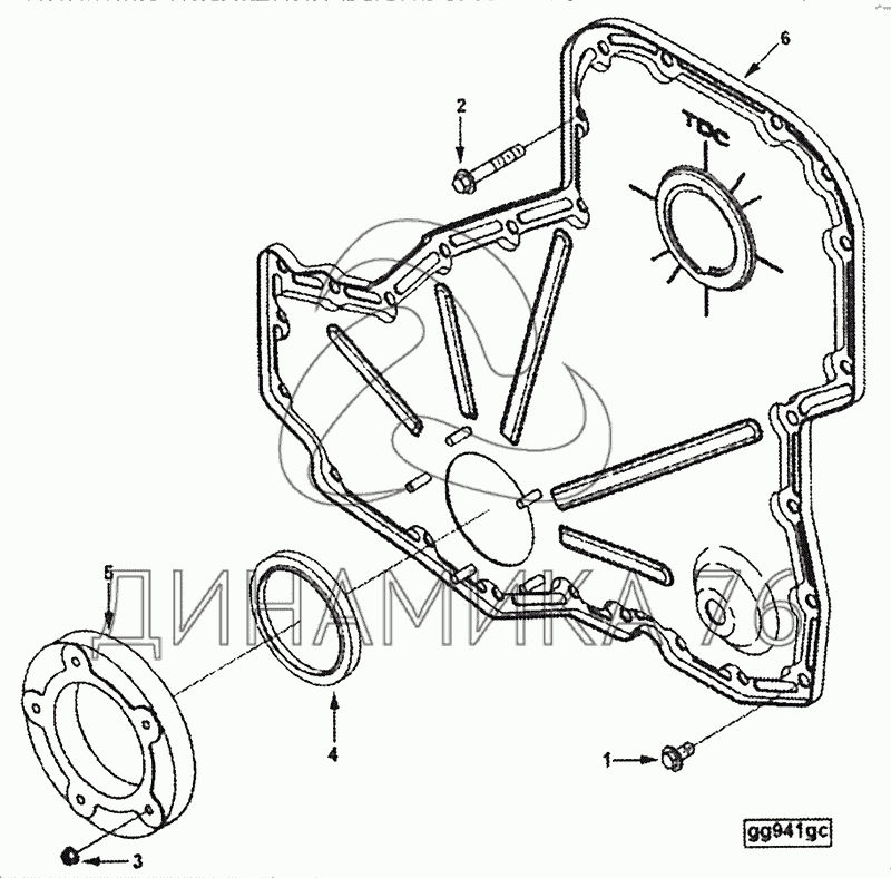 Перечень комплектующих от Крышка передних распределительных шестерен на 6ISLe-400-40 (Repto)