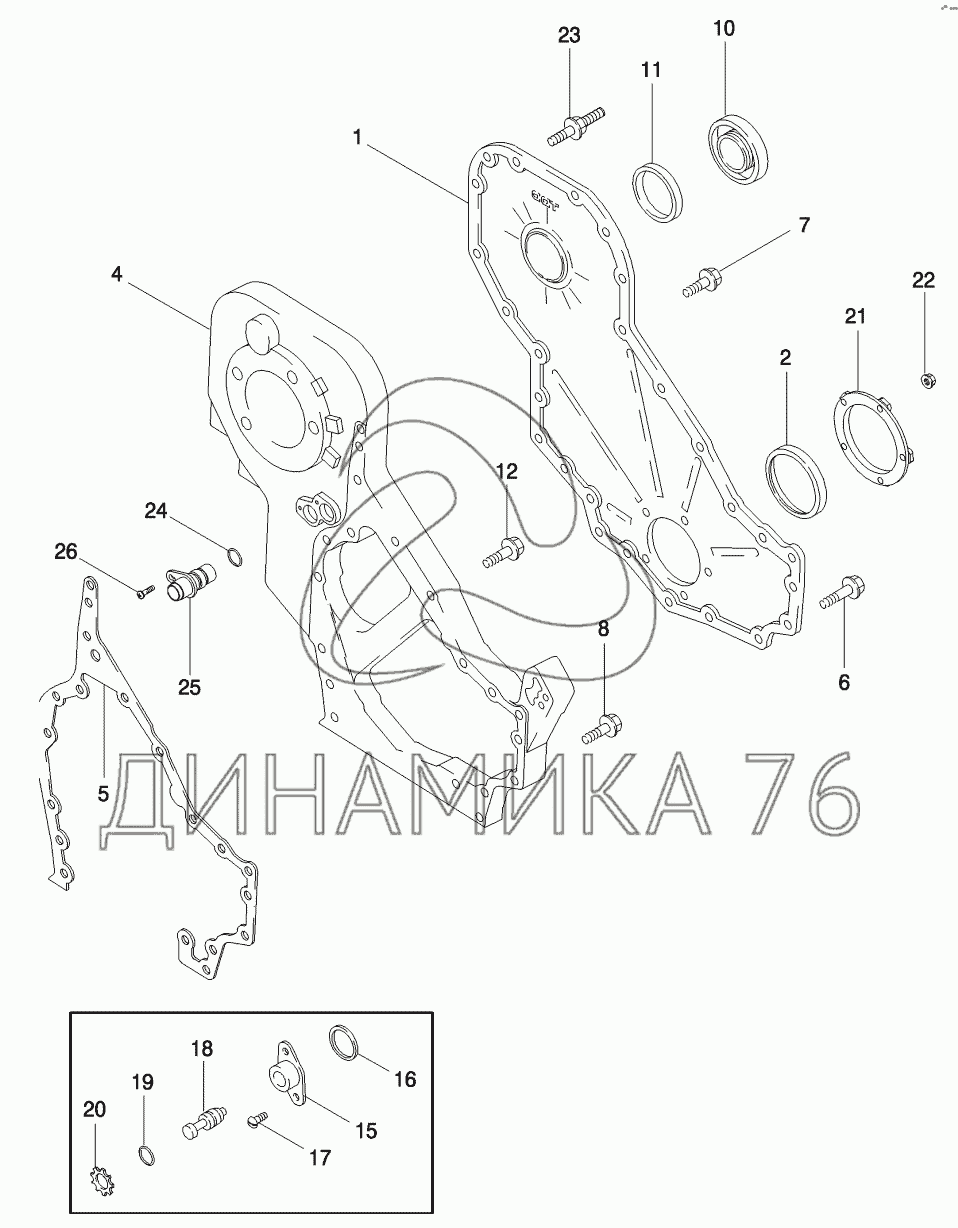 Перечень комплектующих от FRONT GEAR COVER на Cummins 310