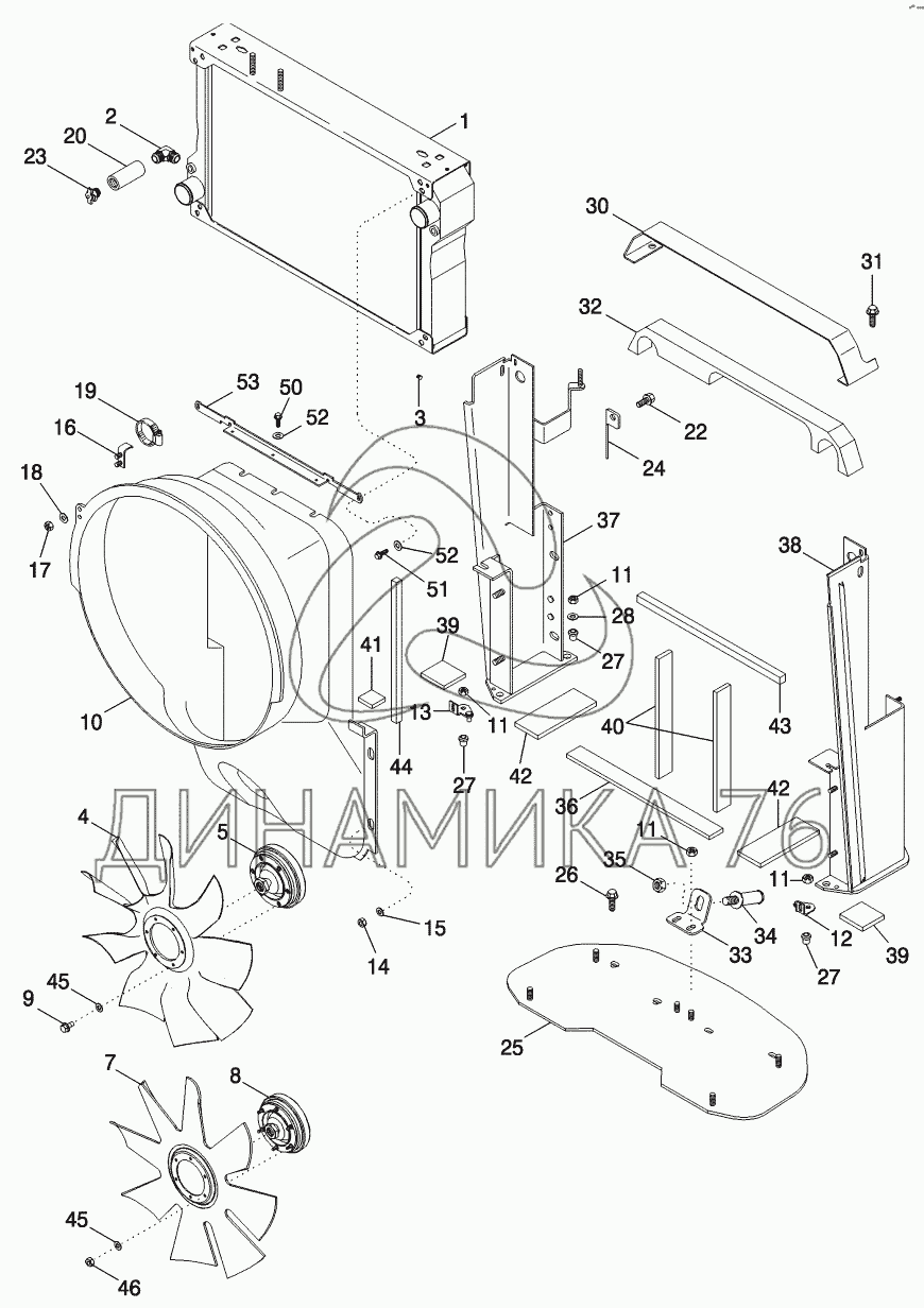 Перечень комплектующих от RADIATOR AND FAN SHROUD на Cummins 310