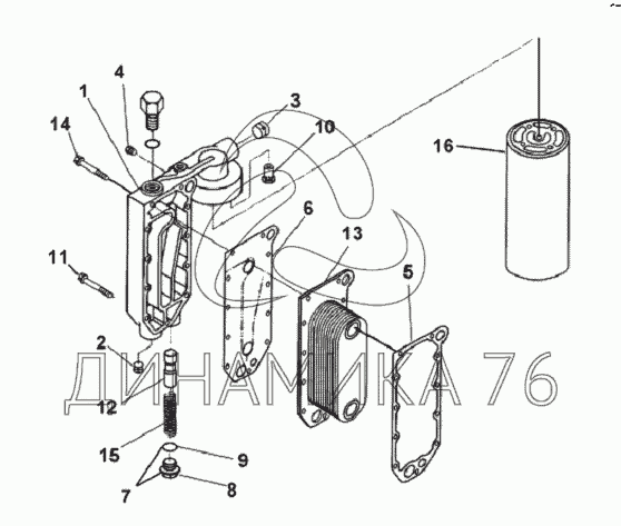 Перечень комплектующих от Маслоохладитель и масляный фильтр на L340-20