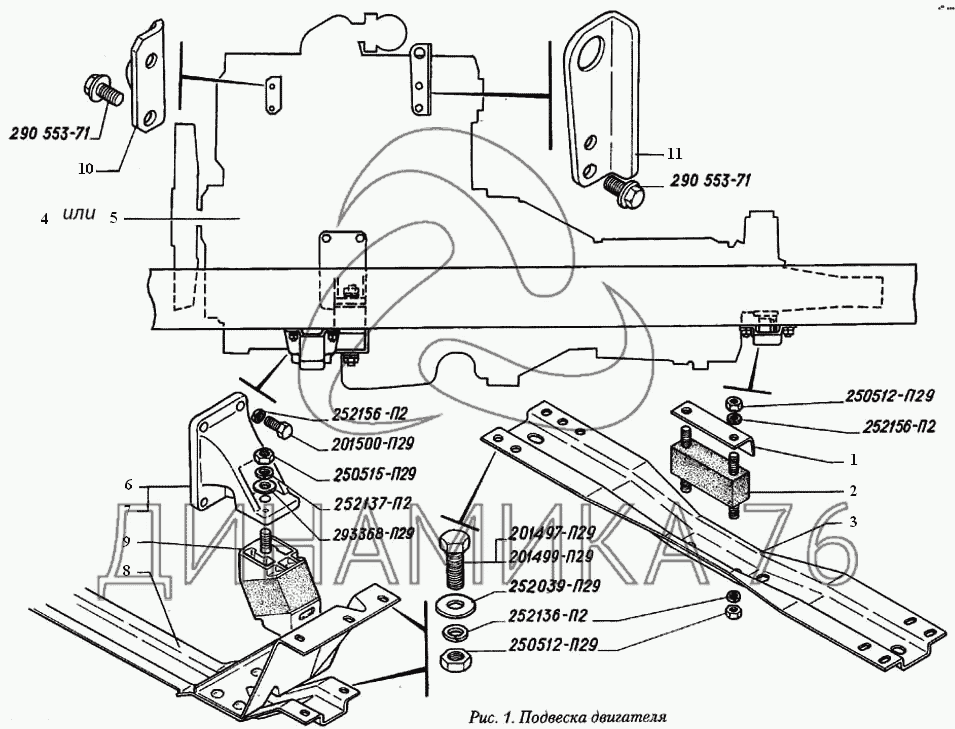 Подвеска двигателя на ГАЗ-560 (до 2004 г.)