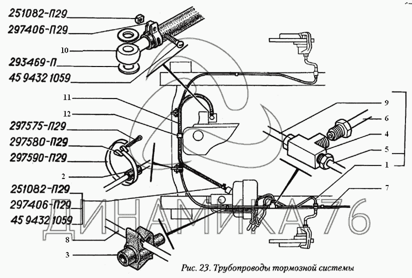 Трубопроводы тормозной системы на ГАЗ-560 (до 2004 г.)