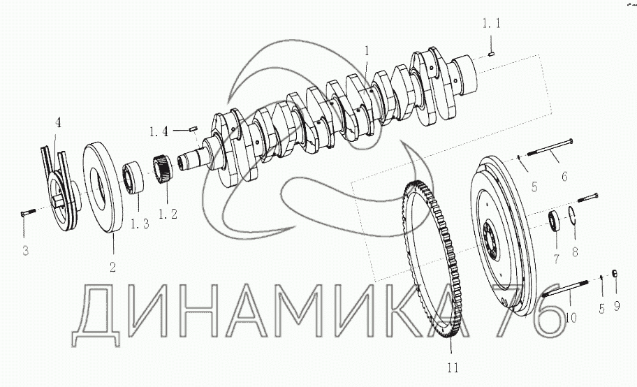Перечень комплектующих от Crankshaft and Flywheel на WD615.47