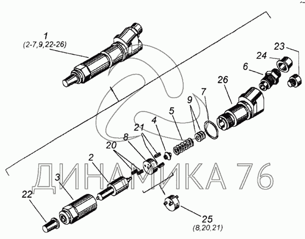 Перечень комплектующих от Форсунка на 740.14-300 (Евро 1)