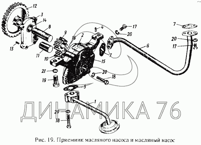 Перечень комплектующих от Приемник масляного насоса и масляный насос на Д-242