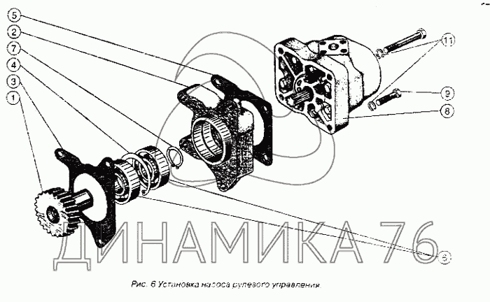 Перечень комплектующих от Установка насоса рулевого управления на Д-243
