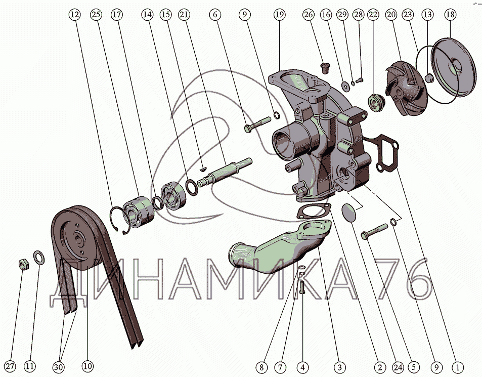 Схемы запчастей предназначены для справочных целей! Мы продаем не все запчасти от Установка водяного насоса на Д-260.7C, представленные в этом списке.