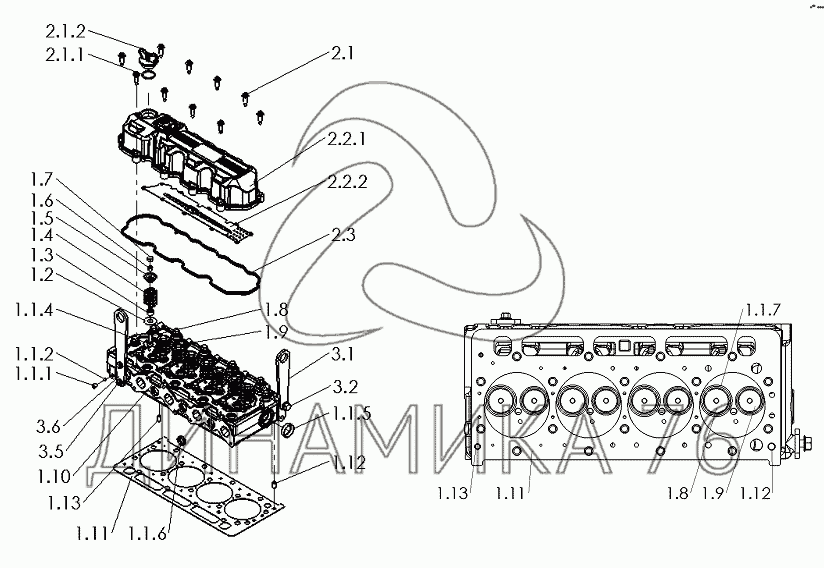 Перечень комплектующих от R3000-1003000 Cylinder Head Assembly на YC4D2455-D39