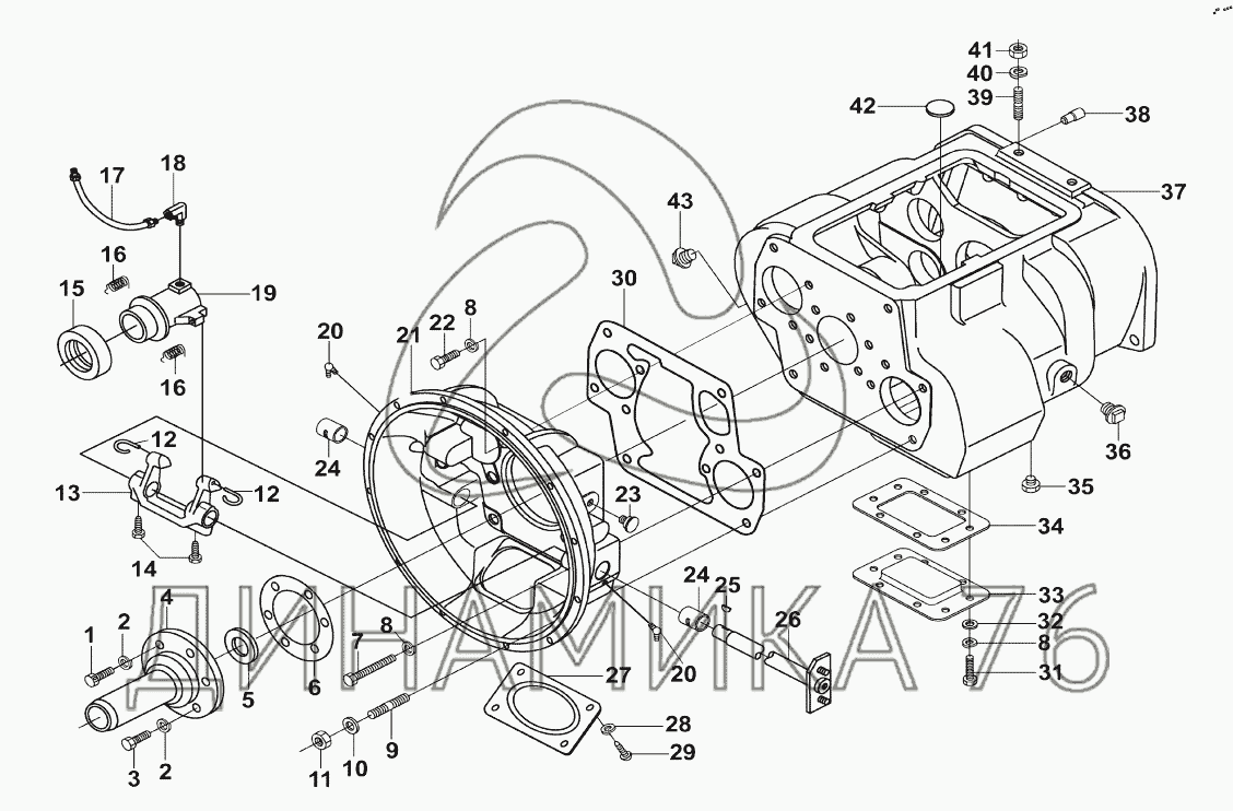 Схемы запчастей предназначены для справочных целей! Мы продаем не все запчасти от Clutch and gearbox housing assembly на 9JS220, представленные в этом списке.