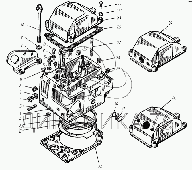 Схемы запчастей предназначены для справочных целей! Мы продаем не все запчасти от Головка цилиндра на ТМЗ-8486.10-04, представленные в этом списке.