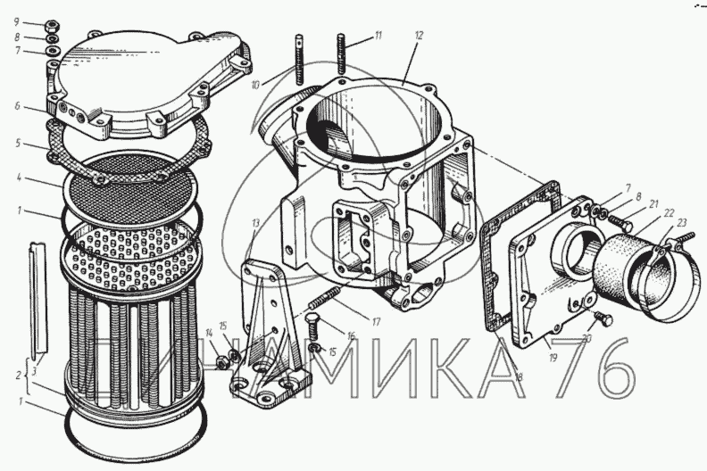 Схемы запчастей предназначены для справочных целей! Мы продаем не все запчасти от Охладитель наддувочного воздуха на ТМЗ-8486.10-04, представленные в этом списке.