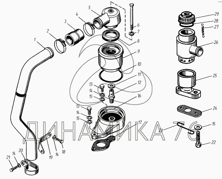 Схемы запчастей предназначены для справочных целей! Мы продаем не все запчасти от Вентиляция картера на ТМЗ-8486.10-04, представленные в этом списке.