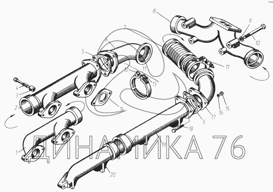 Перечень комплектующих от Газопровод на ТМЗ-8525.10