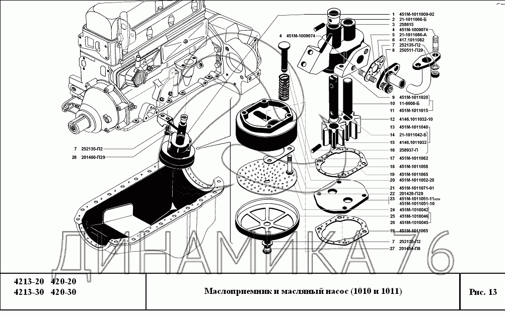 Маслоприемник и масляный насос — УМЗ-4213, 420: