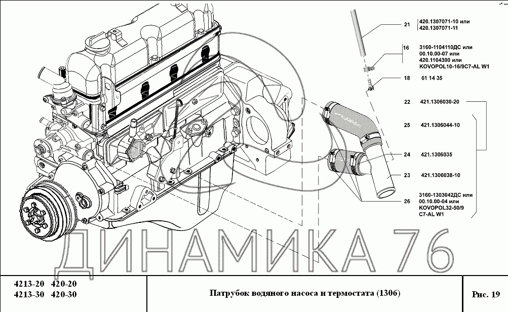 Перечень комплектующих от Патрубок водяного насоса и термостата на УМЗ-4213, 420