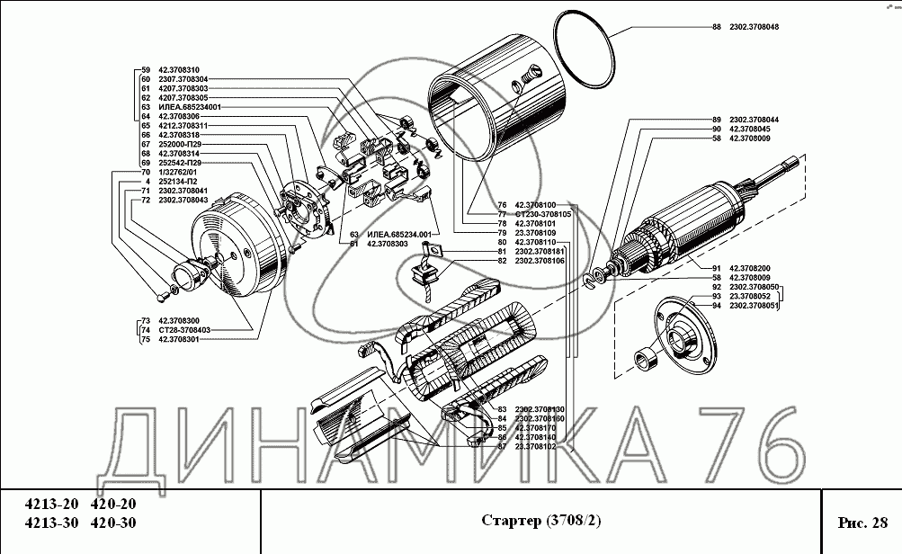 Перечень комплектующих от Стартер на УМЗ-4213, 420