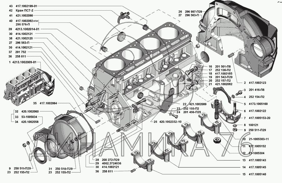 Перечень комплектующих от Блок цилиндров на УМЗ-4213 (Евро 3)