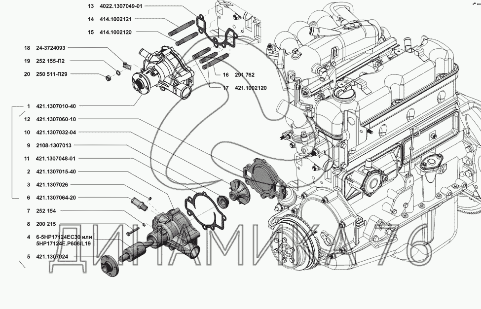 Перечень комплектующих от Насос водяной на УМЗ-4213 (Евро 3)