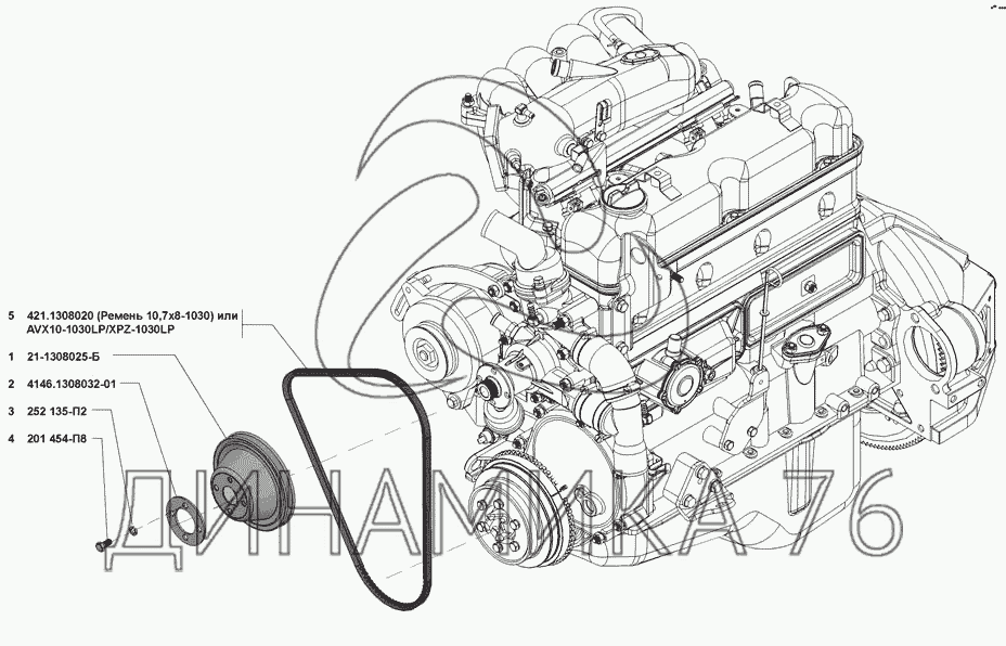 Перечень комплектующих от Привод водяного насоса на УМЗ-4213 (Евро 3)