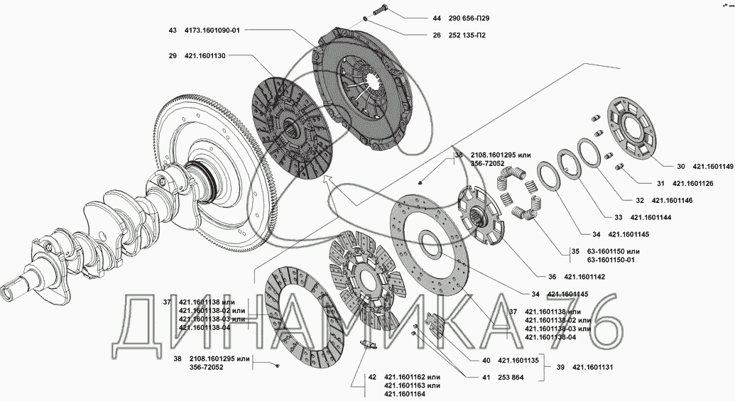 Перечень комплектующих от Сцепление на УМЗ-4213 (Евро 3)