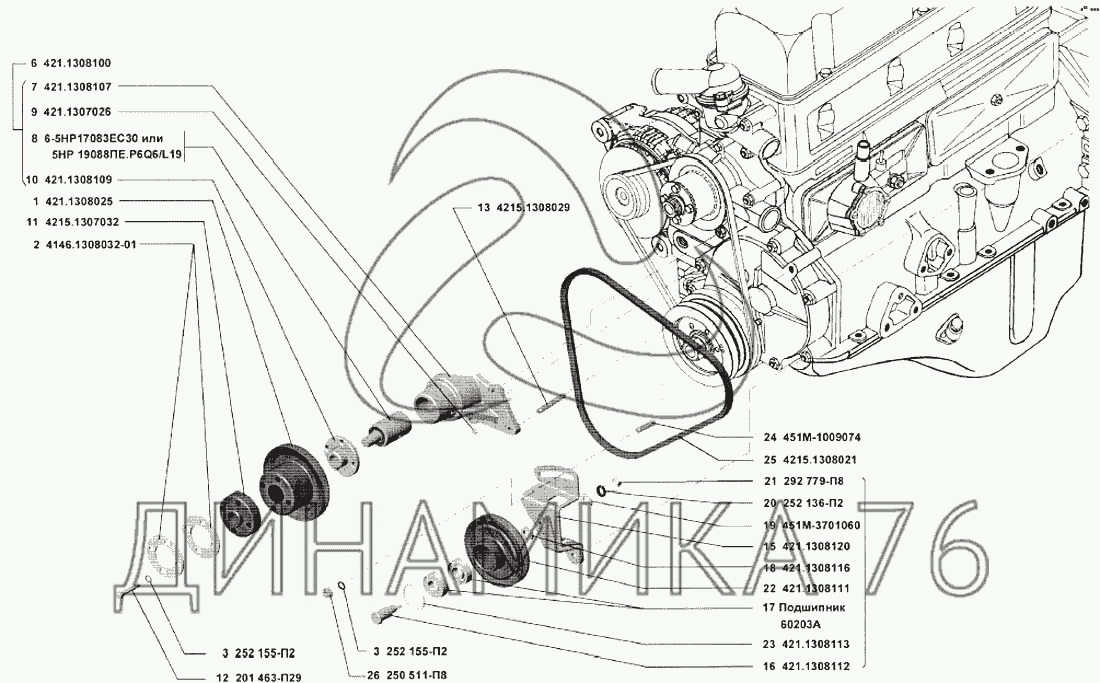 Перечень комплектующих от Привод водяного насоса на УМЗ-4215