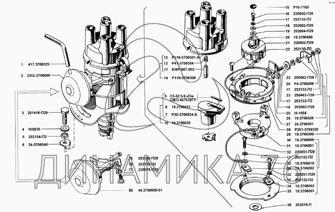 Перечень комплектующих от Распределитель зажигания на УМЗ-4215
