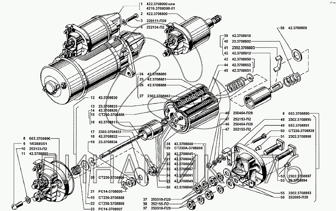 Схемы запчастей предназначены для справочных целей! Мы продаем не все запчасти от Стартер на УМЗ-4215, представленные в этом списке.