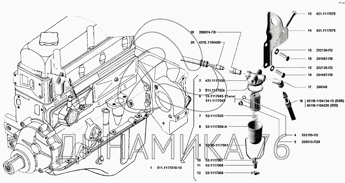 Перечень комплектующих от Трубопроводы топливные, фильтр тонкой очистки топлива на УМЗ-4215