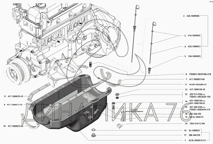 Перечень комплектующих от Картер масляный на УМЗ-42164 (Евро 4)