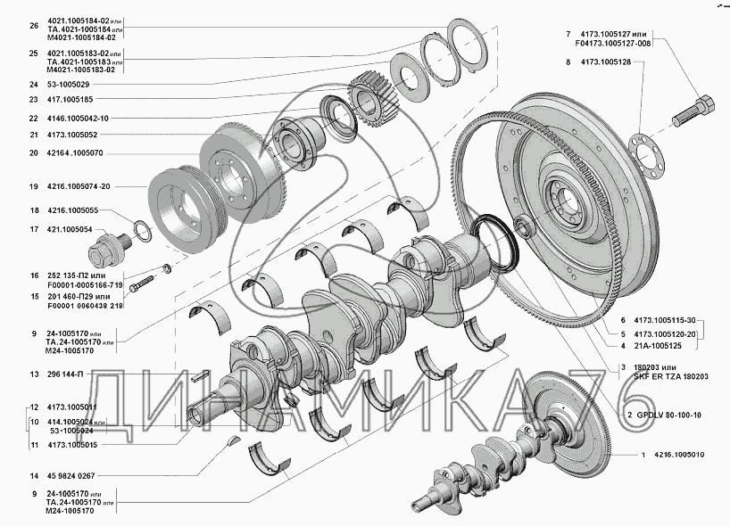 Перечень комплектующих от Вал коленчатый и маховик на УМЗ-42164 (Евро 4)