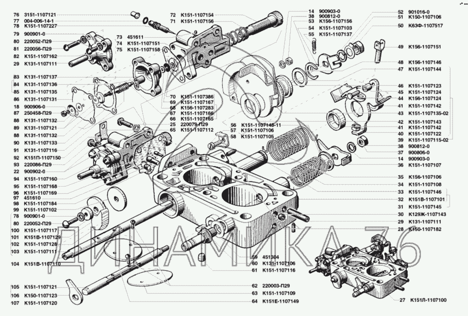 Перечень комплектующих от Карбюратор К151Л на УМЗ-421