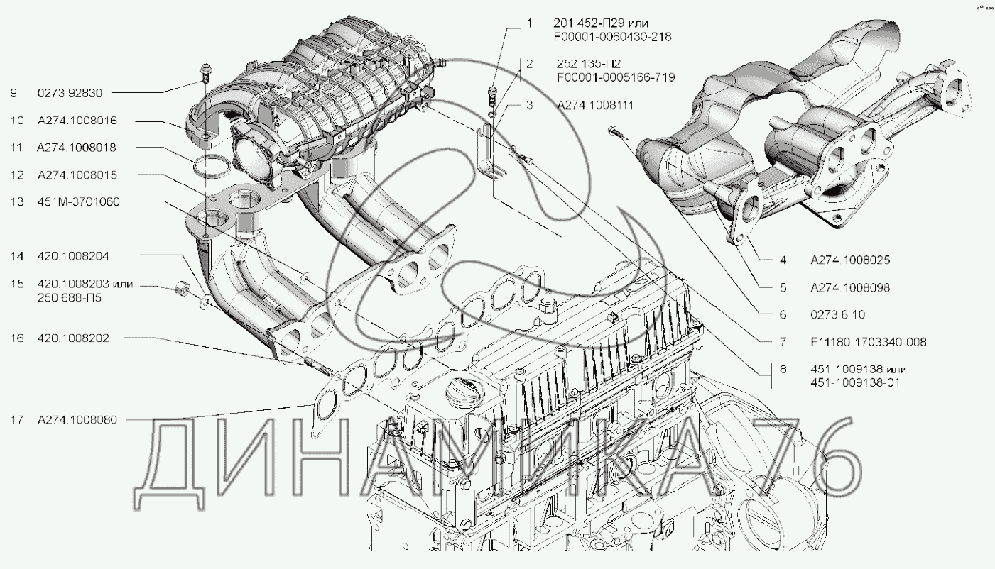 Схемы запчастей предназначены для справочных целей! Мы продаем не все запчасти от Газопроводы впускной и выпускной на УМЗ-А274, представленные в этом списке.