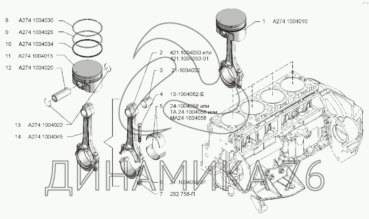 Схемы запчастей предназначены для справочных целей! Мы продаем не все запчасти от Поршень и шатун на УМЗ-А274, представленные в этом списке.