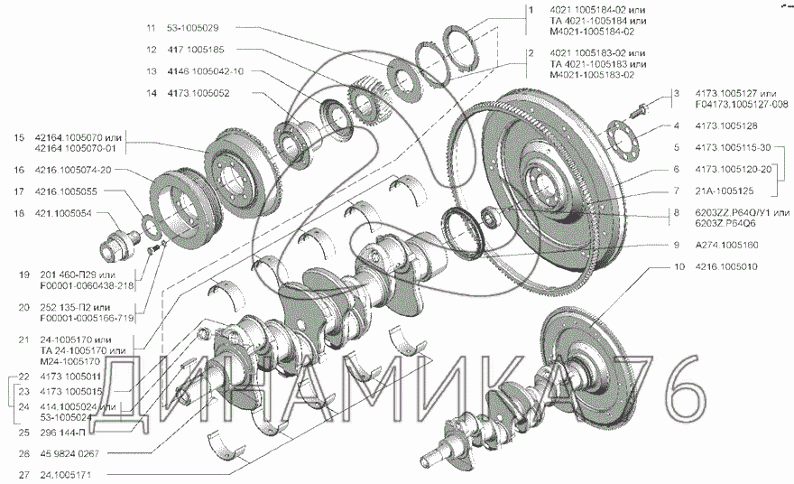 Схемы запчастей предназначены для справочных целей! Мы продаем не все запчасти от Вал коленчатый и маховик на УМЗ-А274, представленные в этом списке.