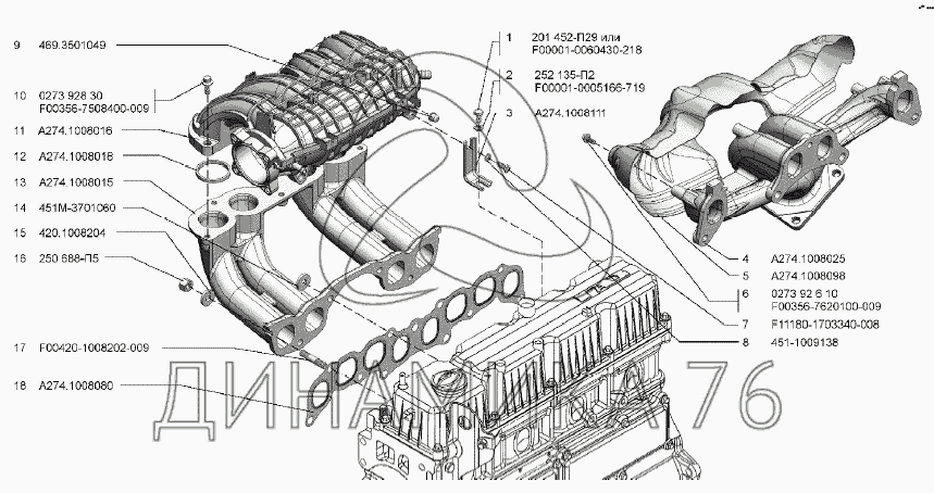 Перечень комплектующих от Газопроводы впускной и выпускной на УМЗ-А275