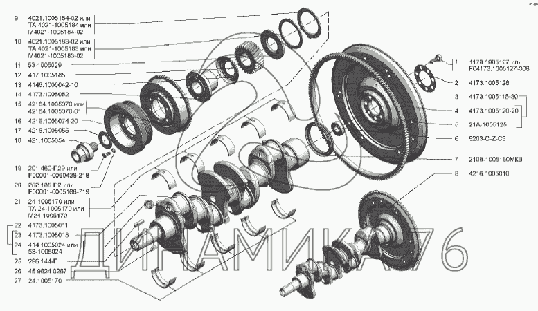 Вал коленчатый и маховик — УМЗ-А275: