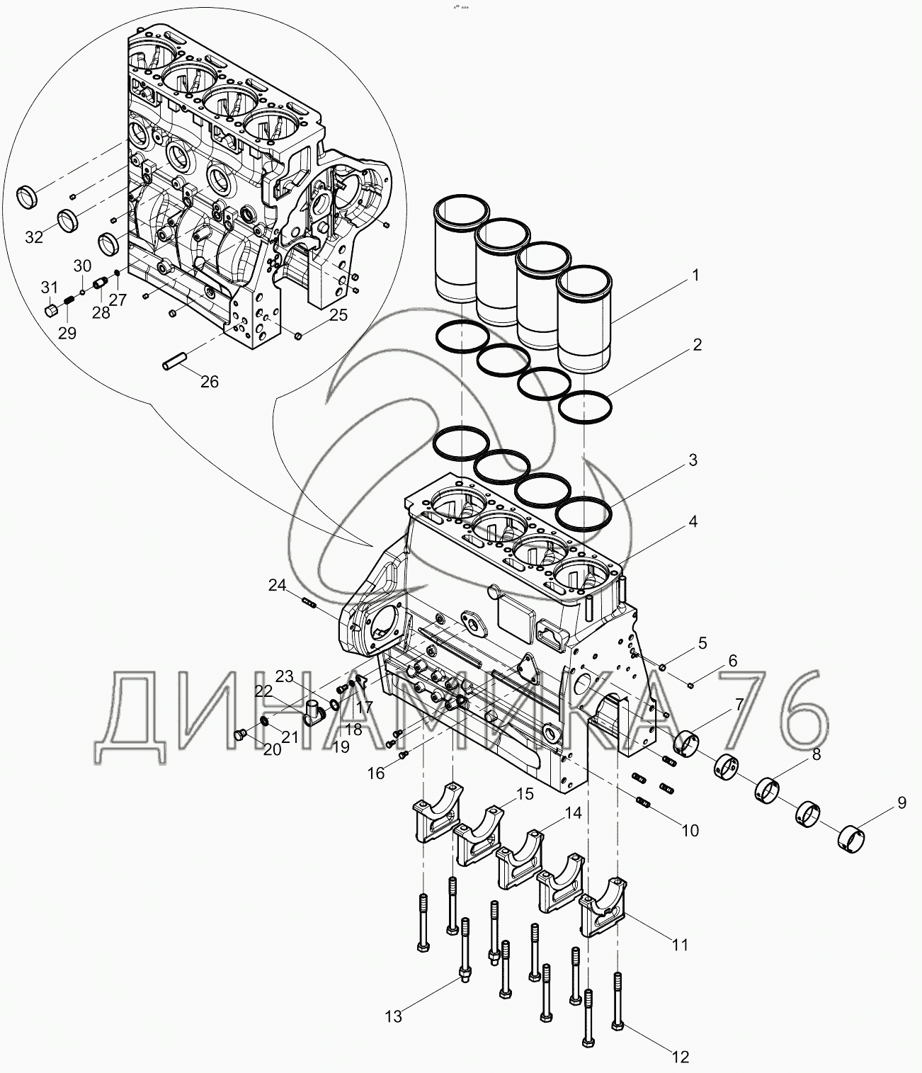 Перечень комплектующих от Cylinder block subassembly на 226B