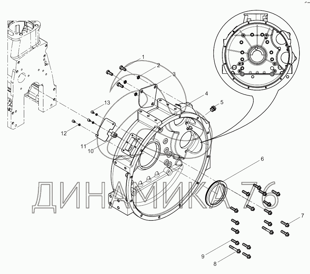 Перечень комплектующих от Flywheel Housing Assembly на 6M11 DHM11D0003