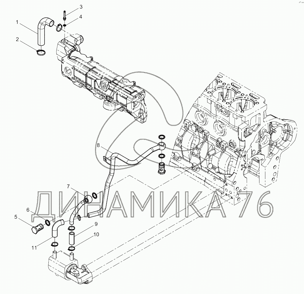 Перечень комплектующих от Oil Cooler Coolant Pipe Group на BAUDOUIN 3M10