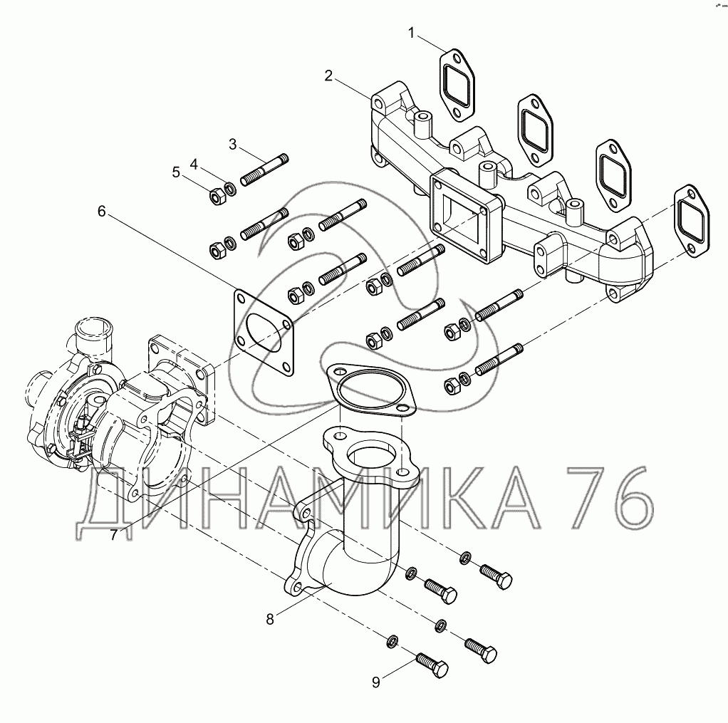 Перечень комплектующих от Exhaust Manifold Group на BAUDOUIN 4M06G44