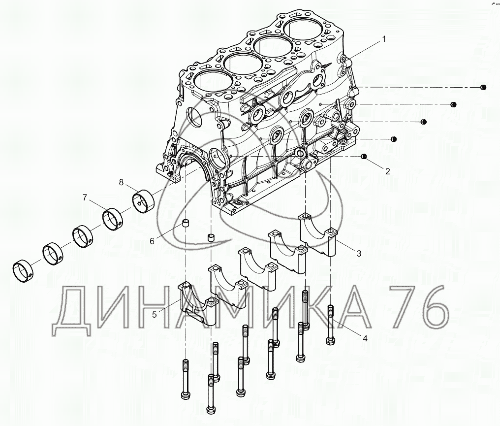 Перечень комплектующих от Crankcase pre-assembly на BAUDOUIN 4M06G50